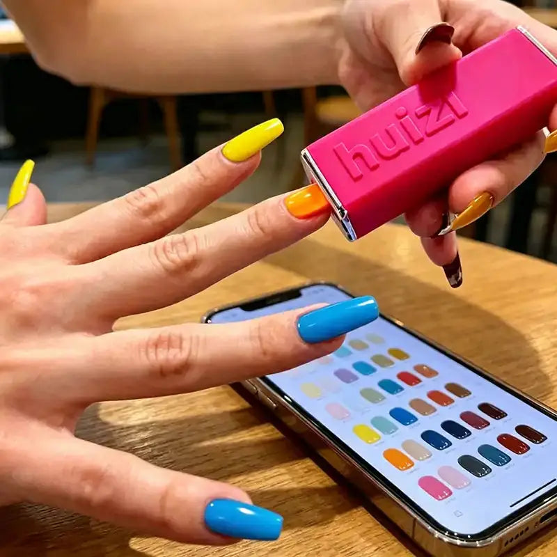 Change nail colors in seconds via the Huizi App for endless design flexibility.
