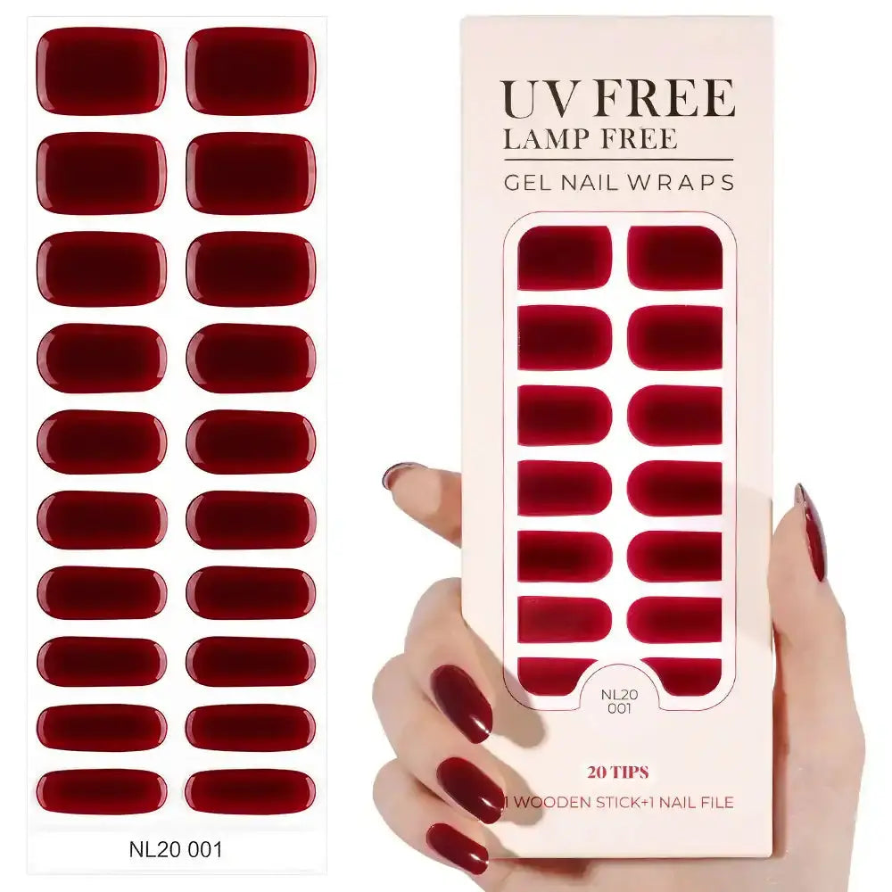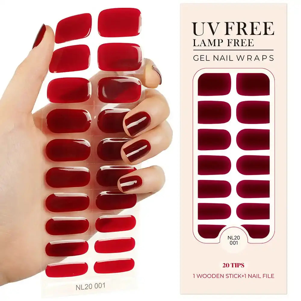 Wholesale Red Solid UV-Free Gel Nail Wraps Manufacturer OEM No Lamp Nail Wraps