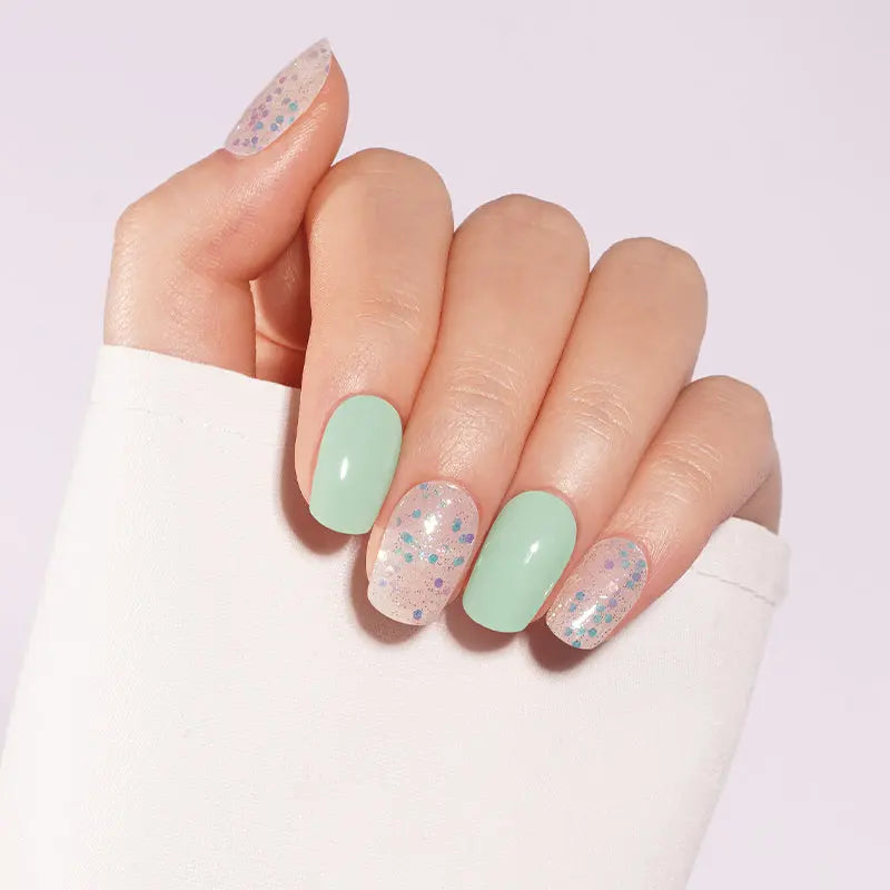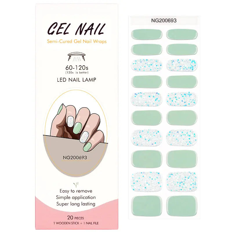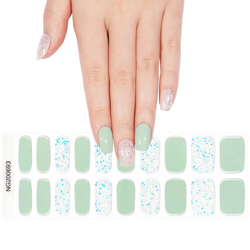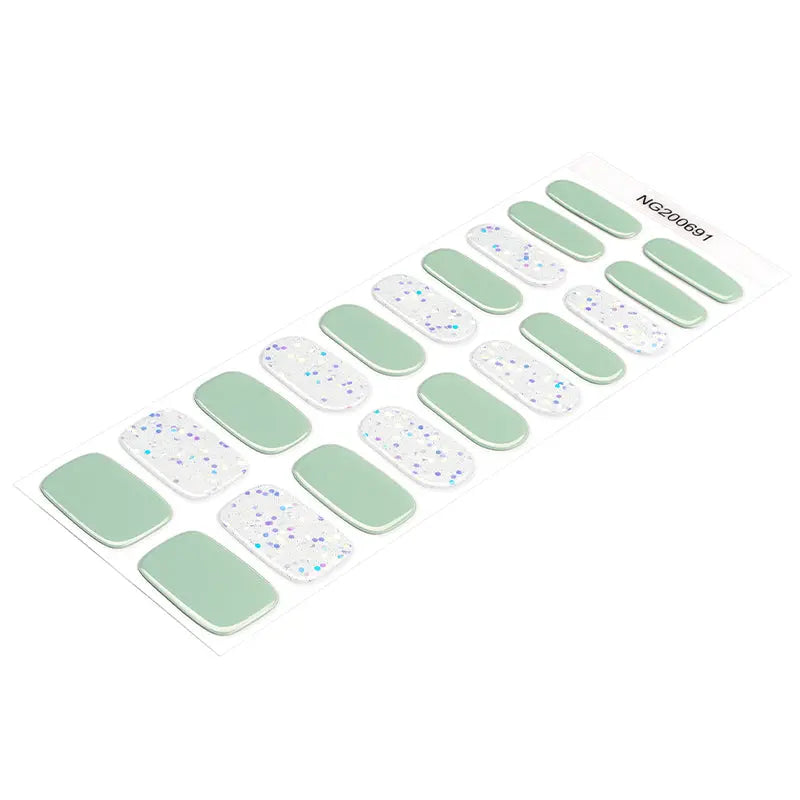 Полуполимерные гелевые наклейки для ногтей с мятно-зелеными блестками | Оптовая продажа под собственной торговой маркой (OEM)