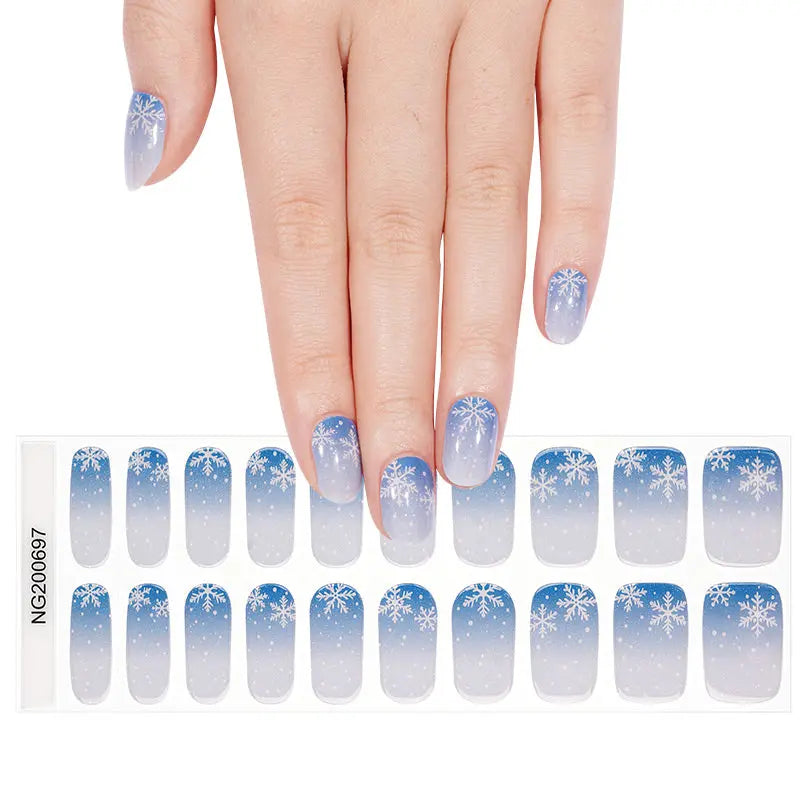 Ombre Ice-blue Semi-Cured Gel Nail Wraps Private Label OEM Wholesale